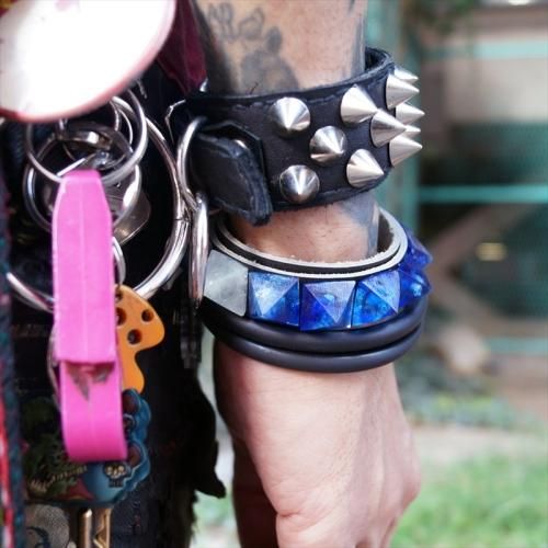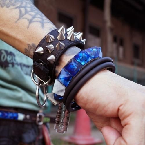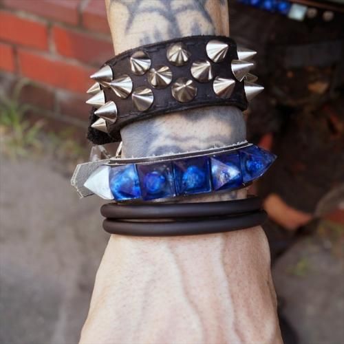 ¢£A.F.P. x WHEV_DIY CRYSTAL STUDS WRISTBAND 1 ROW PYRAMID BLUE¢£