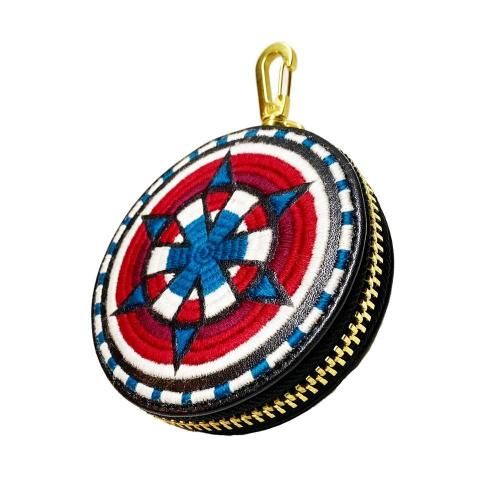 ¢£¡Úblackmeans¡Û80TAC13-4 EMBROIDERY CIRCLE POUCH / PURSE BLACK¢£